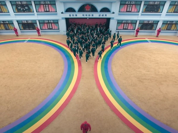 Οι θαυμαστές στο subreddit r/SquidGame παρατήρησαν, στο φόντο μιας συγκεκριμένης λήψης μέσα στην αίθουσα όπου λαμβάνει χώρα το ομώνυμο παιχνίδι, μια ζωγραφιά στους τοίχους, με σιλουέτες ανθρώπων που κρέμονται με τα χέρια από ύψος.