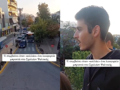 «Τι συμβαίνει όταν κολλάει ένα λεωφορείο μπροστά στο Σχολείον Ψαλτικής», γράφει η λεζάντα στο κλιπ που ανάρτησε ο λογαριασμός της σχολής στο Tiktok.