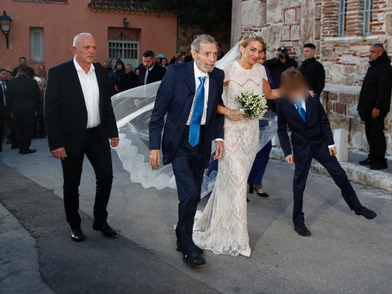 Έτσι, λίγο μετά τις έξι η Χρυσή Βαρδινογιάννη έφτασε στον Ιερό Ναό, συνοδευόμενη από τον πατέρα της, Γιώργο Βαρδινογιάννη, ο οποίος, σύμφωνα με το Live News, θα είναι και εκείνος που θα αλλάξει τις βέρες.