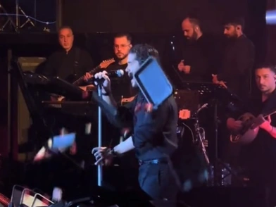 Ωστόσο, όταν ένα πανέρι προσγειώθηκε στο κεφάλι του Νίκου Οικονομόπουλου την ώρα που εκείνος τραγουδούσε τον «Έκπτωτο άγγελο», ο τραγουδιστής δεν μπόρεσε να κρύψει την ενόχλησή του.
