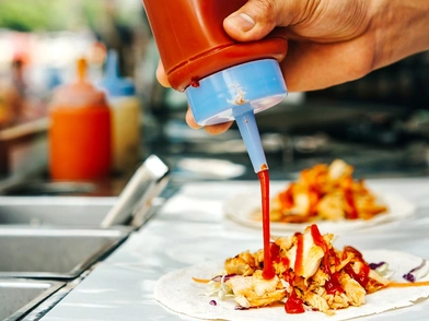 Το κόλπο για να ρίξετε την κέτσαπ χωρίς καθόλου κόπο, είναι πιέσετε το μπουκάλι όχι στην πλατιά του μεριά, αλλά στις πλευρές. Η αρνητική πίεση που δημιουργείται τότε αναγκάζει την κέτσαπ να χυθεί από μόνη της, χωρίς να χρειάζεται άλλη δύναμη.