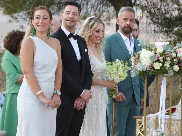 Συγγενείς και φίλοι του ζευγαριού παραβρέθηκαν στη γαμήλια τελετή ενώ ακολούθησε και η βάφτιση του ενός έτους γιου τους.