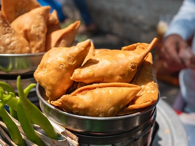 Στην Ινδία τα σαμόσα προετοιμάζονται ως ένα τριγωνικό κέλυφος από αλεύρι τύπου Maida, με γέμιση που περιέχει συνήθως ένα μείγμα πουρέ από βραστές καρυκευμένες πατάτες, κρεμμύδι, πράσινα μπιζέλια, μπαχαρικά και πράσινο τσίλι. Το σύνολο της ζύμης, στη συνέχεια τηγανίζεται σε φυτικό έλαιο έως ότου αποκτήσει ένα χρυσό καφέ χρώμα.