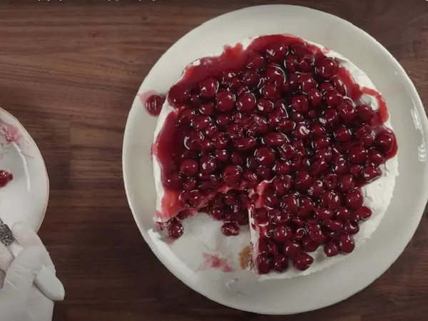 - Προσθέτουμε τα καλά στραγγισμένα βύσσινα και ανακατεύουμε.