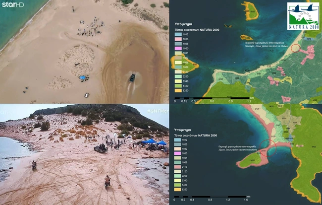 Η καταγγελία αφορούσε σοβαρό περιστατικό κίνησης τροχοφόρων οχημάτων (μοτοσυκλέτες και τζιπ 4Χ4 μεγάλου κυβισμού) με υψηλές ταχύτητες σε προστατευόμενες παραλίες της Ελαφονήσου, με αποτέλεσμα την υποβάθμιση των ευαίσθητων αμμοθινικών οικοσυστημάτων.
