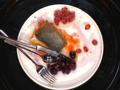 Ο νεαρός παίκτης προσπάθησε να τους εξηγήσει κάπως τη φιλοσοφία γύρω από το πιάτο του. «Το λαβράκι σοτέ αντιπροσωπεύει την Ελλάδα, το τσίλι που έχω βάλει αντιπροσωπεύει το έθνικ στοιχείο, ενώ έχω προσθέσει πουρέ λεμόνι και σταφύλι».