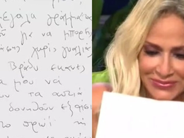Στο γράμμα αυτό, λοιπόν, ο Καρβέλας γράφει στη Βίσση: «Γουρουνίτσα μου, κάνω μεγάλα γράμματα για να μπορέσεις να τα διαβάσεις χωρίς γυαλιά. Εχτές το βράδυ έκανες τα μάτια μου να δακρύσουν, τα αυτιά μου να δονηθούν εξαίσια. Σήμερα το πρωί τη γλώσσα μου να ριγήσει και την μύτη μου να αγαλλιάσει. Πάντα η αφή συνεχίζει να μας χωρίζει γ@μ@τ@ σ’ αγαπάω…»