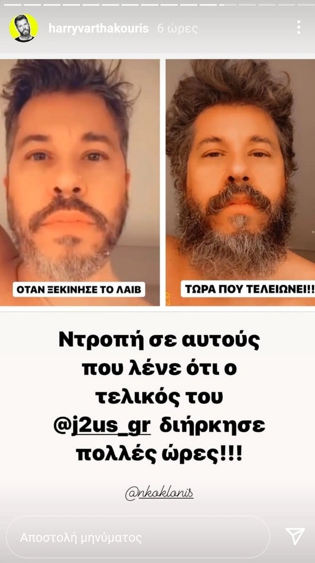Θετικός στον κορονοϊό βρέθηκε ο γνωστός τραγουδιστής Χάρης Βαρθακούρης με αποτέλεσμα να μην μπορεί να δώσει το παρών στον μεγάλο τελικό του J2US που πραγματοποιήθηκε το βράδυ της Πρωτοχρονιάς. Αυτό όμως δεν σήμαινε ότι δεν παρακολούθησε όλο το φαντασμαγορικό σόου, το οποίο όμως φαίνεται πως είχε περισσότερη διάρκεια απ' όσο περίμενε!