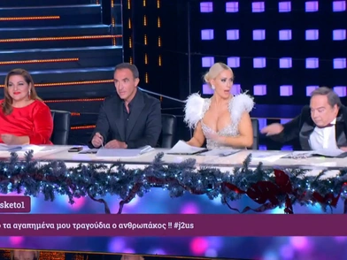 «Μια χαρά είμαι, δεν πτοούμαι από αυτά» είπε ο Σταμάτης Φασουλής στον τελικό του J2US με τη Μαρία Μπακοδήμου να ζητεί από τη μητέρα της «αν μας βλέπεις μανούλα ξεμάτιαζε» και τον Νίκο Κοκλώνη να λέει στη Βίκυ Σταυροπούλου: «Τον έφαγες με τα μάτια σου»!