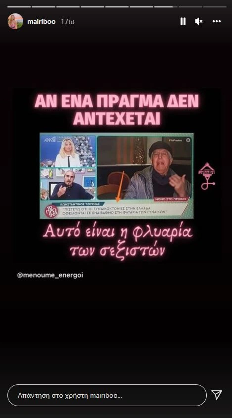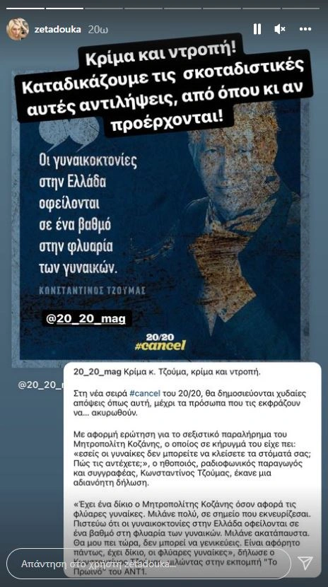 Διαβάστε ακόμη: Κωνσταντίνος Τζούμας: «Είμαι εναντίον των γυναικοκτονιών, τα άλλα είναι αποτυχημένο χιούμορ»