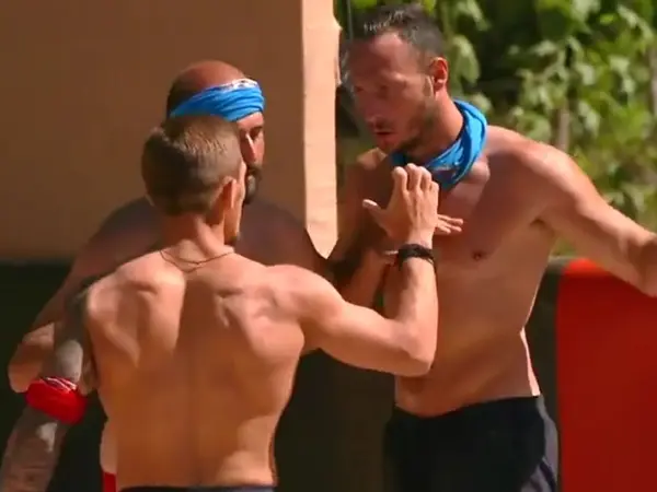 Η ένταση δεν άργησε να ξεσπάσει κι οι δυο τους πιάστηκαν στα χέρια, έτοιμοι να μαλώσουν άγρια. Οι συμπαίκτες του τους χώρισαν για να αποφύγουν τα χειρότερα αλλά τα βλέμματά τους τα έλεγαν όλα και φαίνεται ότι ο ένας βλέπει στον άλλον έναν ισχυρό αντίπαλο. «Μάζεψε το στόμα σου» φώναζε ο Γιώργος Κατσαούνης κι ο Γιωρίκας Πιλίδης του απάντησε σε έντονο ύφος: «Γιατί τι θα μου κάνεις;».