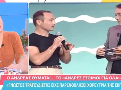 Στην εποχή που παρουσίαζε την εκπομπή «Άντρες έτοιμοι για όλα» αναφέρθηκε ο Ανδρέας Μικρούτσικος μέσα από τη Super Κατερίνα το πρωί της Παρασκευής (14/01) και μάλιστα, αποκάλυψε ένα πολύ δυσάρεστο περιστατικό που είχε πληροφορηθεί τότε όπου πολύ γνωστός τραγουδιστής είχε αποπειραθεί να βιάσει μία χορεύτρια της εκπομπής.