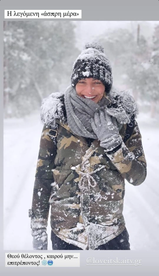 Aπό την πλευρά της πάντως η Ιωάννα Μαλέσκου δεν πτοήθηκε. Βγήκε έξω από το σπίτι της στα Μελίσσια, έπαιξε με το χιόνι και έβγαλε μερικές φωτογραφίες για το Instagram της.