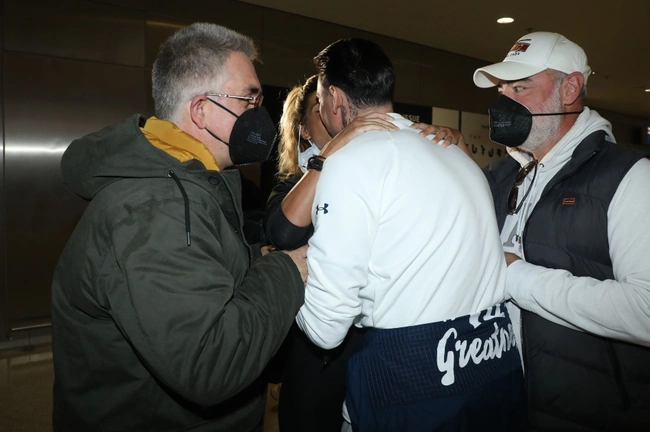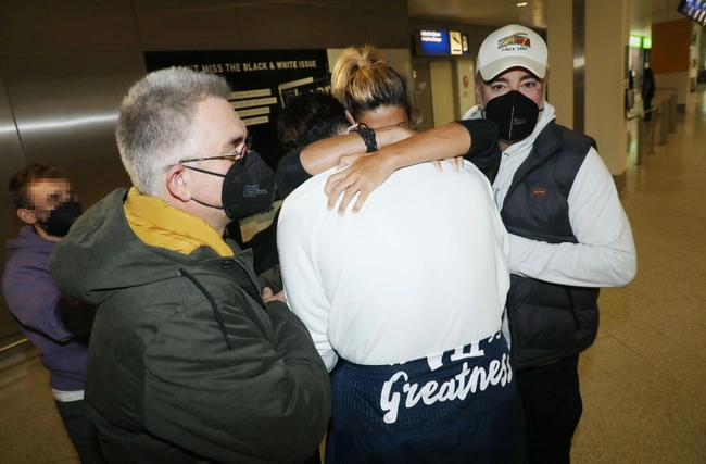 Στο αεροδρόμιο Ελευθέριος Βενιζέλος την περίμεναν εκτός από άτομα της παραγωγής, ο σύντροφός της, Γιώργος Καβακάκης, τον οποίο μόλις είδε η Πελαγία Καζολέα μετά από σχεδόν δύο ολόκληρους μήνες έπεσε στην αγκαλιά του και τον φίλησε, μία στιγμή που ο φωτογραφικός φακός απαθανάτισε.