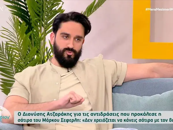 Ο Διονύσης Ατζαράκης άφησε το δικό του σχόλιο για το «Super Mammy» και τον Μάρκο Σεφερλή, μετά το αστείο με τον βιαστή, το οποίο συζητήθηκε ποικιλοτρόπως. Ο γνωστός κωμικός, ήταν καλεσμένος στην εκπομπή «Μέρα Μεσημέρι με τη Μάριον», όπου μεταξύ άλλων, αναφέρθηκε στα όρια της κωμωδίας.