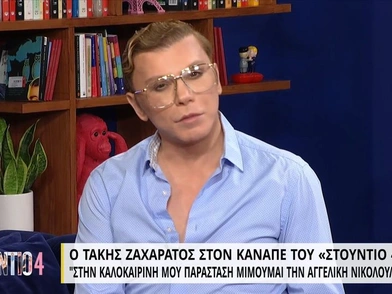 Σε μια μίμηση, που μέχρι σήμερα δεν τον έχουμε δει, αποφάσισε ο Τάκης Ζαχαράτος να προχωρήσει αυτό το καλοκαίρι μέσα από την νέα του παράσταση με την οποία και θα περιοδεύσει σε ολόκληρη την Ελλάδα. Ο λόγος για την Αγγελική Νικολούλη, όπως αποκάλυψε ο ίδιος το απόγευμα της Παρασκευής που βρέθηκε καλεσμένος της Νάνσυ Ζαμπέτογλου και του Θανάση Αναγνωστόπουλου στο «Στούντιο 4» της ΕΡΤ.