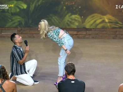 Η Κατερίνα κατέβηκε στη σκηνή, ο Γιάννης Τσολάκης γονάτισε μπροστά της και αφού της έκανε μια τρυφερή εξομολόγηση, της έκανε πρόταση γάμου.