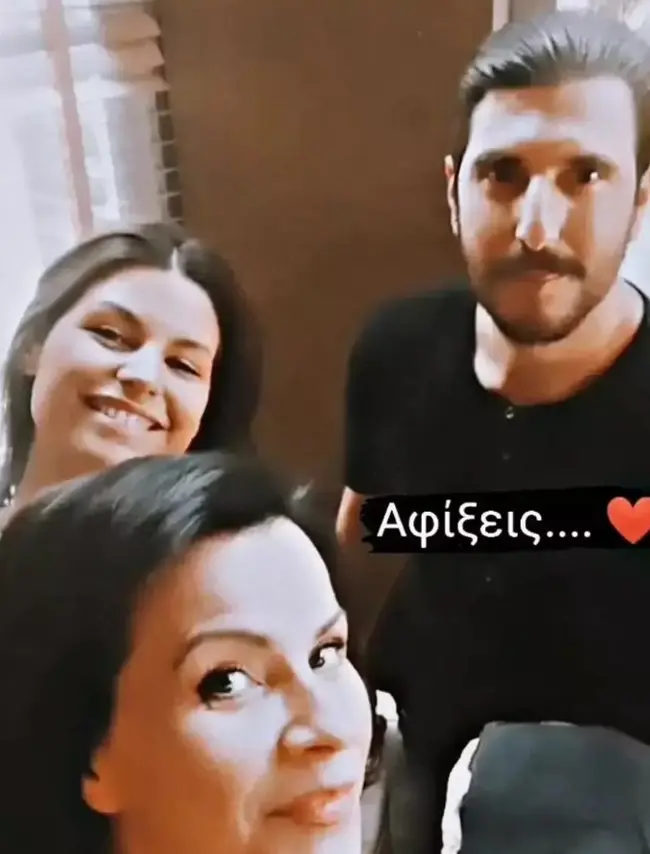 Στο στιγμιότυπο ο ηθοποιός ποζάρει με τις συμπρωταγωνίστριές του, Δανάη Παππά και Νεκταρία Γιαννουδάκη, που υποδύονται τη Θοδώρα και τη Σοφία Αντωνακάκη, αντίστοιχα.