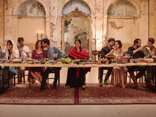 Ένα τραπέζι. Ξύλινο. Βαρύ. Πάνω του κηροπήγια, πιάτα γεμάτα, κανάτες με κρασί. Τα αγαθά ξεχειλίζουν, σαν σε γιορταστικό δείπνο. Οι συνδαιτημόνες έρχονται, χαιρετούν με χαμόγελο, αλλά κρατούν κρυφά μυστικά μέσα στα οποία ζει η μνήμη. Κάθονται μετωπικά, σε παράταξη, ο ένας δίπλα στον άλλον. Σαν να θέλουν να βγάλουν αναμνηστική φωτογραφία. Διάφανο φως μπαίνει από την οροφή. Στο βάθος ο σκοτεινός καθρέφτης , με πατίνα από την φθορά του χρόνου. Κυριακάτικο (;) τραπέζι; Η στοχαστική ώρα του αυστηρού δείπνου; Η ώρα της χαράς; Η ώρα όπου η πληγή θα ανοίξει; Ή θα γιατρευτεί;