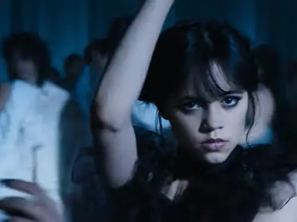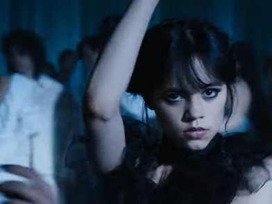 «Τις τελευταίες εβδομάδες με κυνήγησαν, με στοίχειωσαν και με μιμήθηκαν εκατομμύρια φορές στα social media. Ήταν το απόλυτο ξεκάθαρο βασανιστήριο. Ευχαριστώ», λέει η Τζένα Ορτέγκα, ενώ στο βάθος ακούγεται και το γνωστό τραγούδι της Lady Gaga, Bloody Mary που αγαπήθηκε ιδιαίτερα από τους θαυμαστές της σειράς.