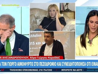 Η σύζυγος του Γιώργου Καραϊβάζ εξήγησε πως δεν αντιλήφθηκε κάτι μέχρι τη στιγμή που είδε τον σύζυγό της αιμόφυρτο στο δρόμο και η περιγραφή της συγκλόνισε τους δύο παρουσιαστές.