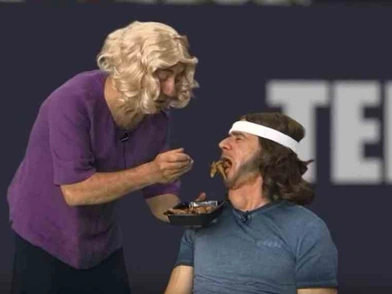 «Τι είπες ρε μάνα;» της απευθύνεται ο Μητσικώστας-Στέφανος. «Αχ, αγόρι μου λέω τι παιχταράς είσαι πασάκα μου. Ούτε ο Ναδάλ δεν σε κερδίζει σήμερα».