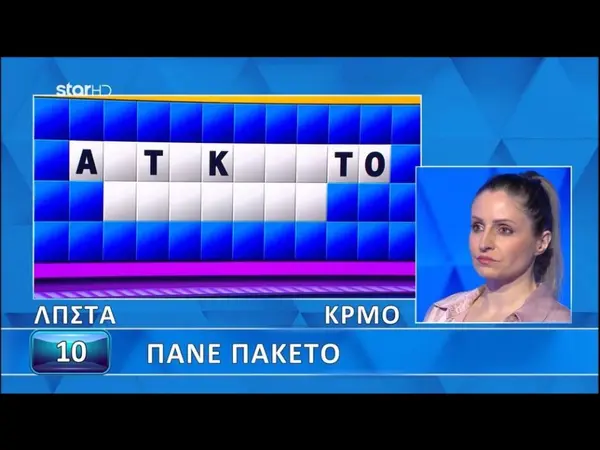 Η παίκτρια από την πλευρά της είπε τα γράμματα Κ, Ρ, Μ και Ο.