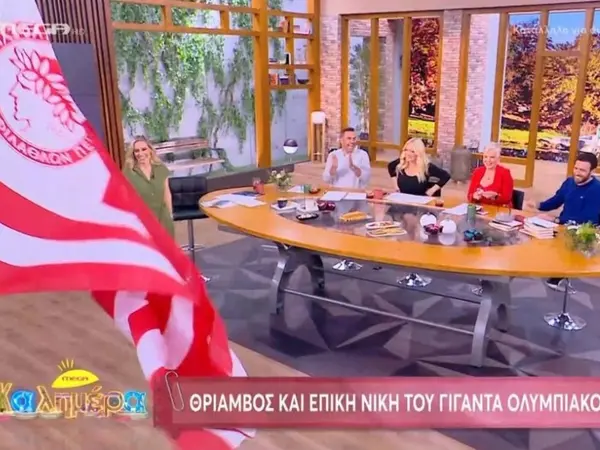 Διαφορετική η έναρξη της εκπομπής «Mega Καλημέρα» το πρωί της Παρασκευής (15/3), με τη σημαία του Ολυμπιακού να ανεμίζει στο πλατό, με αφορμή τη νίκη των ερυθρόλευκων με 6-1 επί της Μακάμπι Τελ Αβίβ και την πρόκριση στην επόμενη φάση του Conference League.