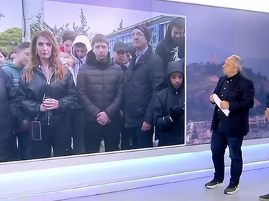 «Μισό λεπτό, διακόψτε. Το παιδί με το καπελάκι που βρίσκεται πίσω, παρακαλούμε να μην κάνει αυτές τις χειρονομίες. Προσπαθούμε να αναδείξουμε το πρόβλημά σας, δεν υπάρχει λόγος για αυτή τη συμπεριφορά», είπε ο δημοσιογράφος.