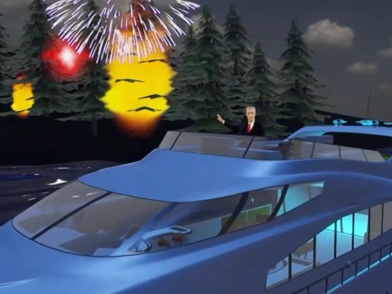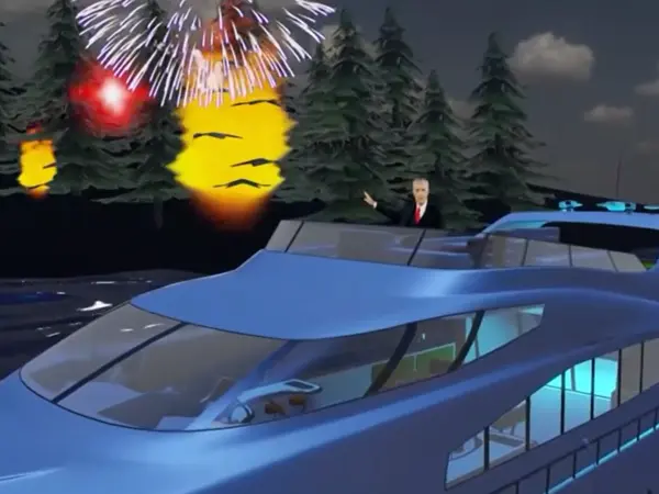 Στη συνέχεια περπάτησε μέσα στο σαλόνι της θαλαμηγού, κάθισε στα ανάκλιντρα για τους επιβάτες και παρουσίασε το τζακούζι, αλλά χωρίς να μπει μέσα στο νερό.
