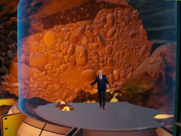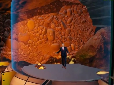 Στο απόσπασμα της εκπομπής Live News, ο παρουσιαστής μπήκε μέσα σε έναν ψηφιακό υποθαλάσσιο ανελκυστήρα και «καταδύθηκε» μέχρι το βάθος του ενεργού ηφαιστείου, που θα μπορούσε να γίνει «σημείο μηδέν» για μία καταστροφική έκρηξη.