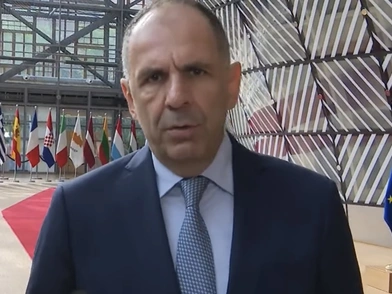 Σε ζωντανή σύνδεση, o Υπουργός Εξωτερικών της Ελλάδας, Γιώργος Γεραπετρίτης.
