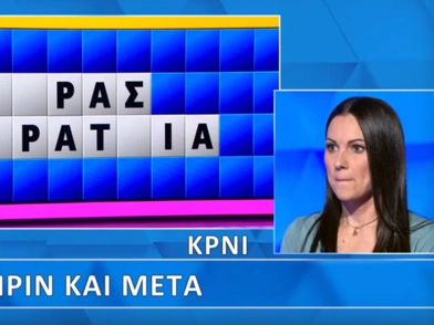Η παίκτρια έπρεπε να βρει δύο λέξεις στην κατηγορία «Πριν και Μετά», έχοντας μάλιστα την ένδειξη ότι η πρώτη ήταν στην Καθαρεύουσα και η δεύτερη στη Δημοτική, και έχοντας μαντέψει σωστά τα γράμματα «Ρ, Σ, Τ, Α, Ι» και αποκλείσει τα «Π, Λ, Κ, Ν».