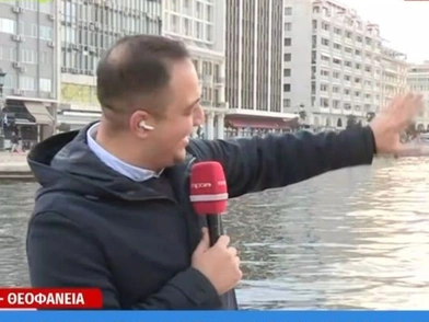 Ο δημοσιογράφος του Mega Θεολόγος Ηλιού είχε ένα απρόοπτο περιστατικό το πρωί της Δευτέρας (6/1) την ώρα που ήταν στον «αέρα» και έδινε ρεπορτάζ από την παραλία της Θεσσαλονίκης.