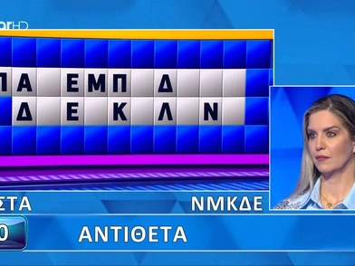 Τα γράμματα που δόθηκαν ήταν το «Λ», το «Π», το «Σ», το «Τ» και το «Α». Οι επιλογές της παίκτριας ήταν «Ν», «Μ», «Κ», «Δ» και «Ε».