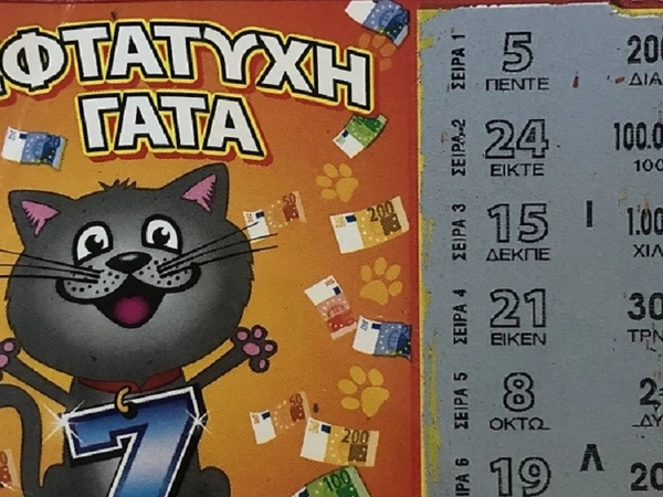 Το μεγάλο έπαθλο του παιχνιδιού «ΕΦΤΑΤΥΧΗ ΓΑΤΑ» κέρδισε ένας νικητής από την Αττική, σκρατσάροντας τον τυχερό λαχνό παρέα με φίλους του. Οι έξι φίλοι αγόρασαν όλοι μαζί μερικά δελτία ΣΚΡΑΤΣ, καθένας διάλεξε στην τύχη από ένα και εκείνος που επέλεξε την «ΕΦΤΑΤΥΧΗ ΓΑΤΑ» είδε να εμφανίζεται μπροστά του το σύμβολο της τυχερής γάτας που κέρδιζε 100.000 ευρώ. Ο τυχερός παίκτης θα δώσει ένα ποσό από τα κέρδη στους φίλους του και με τα υπόλοιπα χρήματα, όπως τους εκμυστηρεύτηκε, θα κάνει ταξίδια με τη μηχανή του, όταν το επιτρέψουν οι συνθήκες.