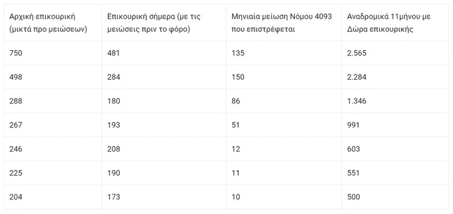 - Συνταξιούχος ΔΕΚΟ που είχε επικουρική 720 ευρώ και σήμερα παίρνει 370 ευρώ δικαιούται από τις μειώσεις των Νόμων 4093 και 4051 αναδρομικά 3.396 ευρώ.