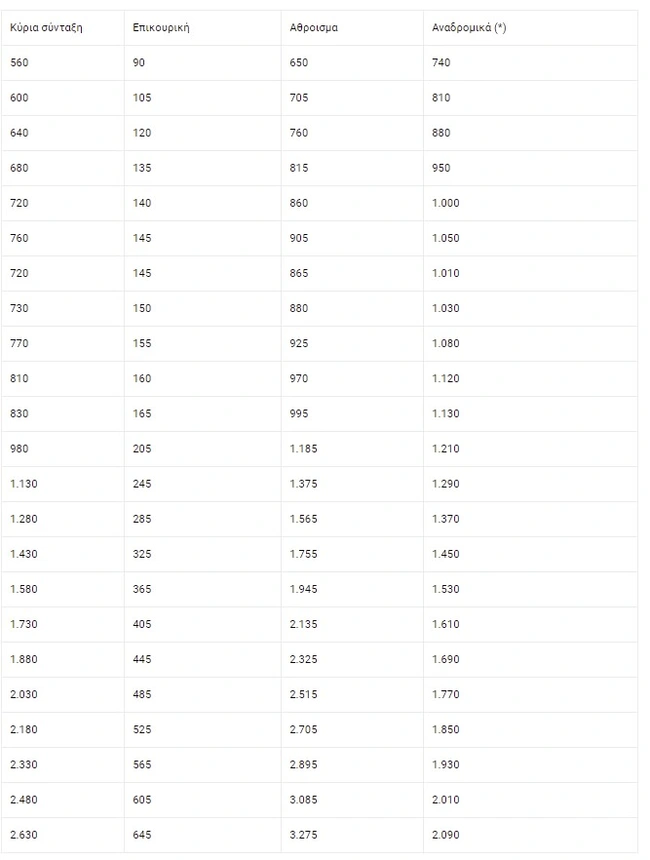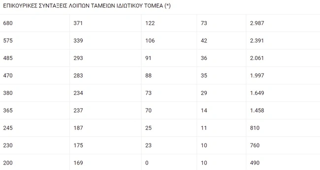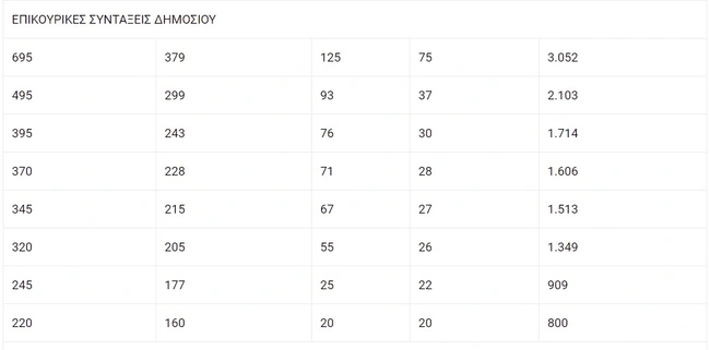 Τα αναδρομικά για τις επικουρικές συντάξεις ανά ταμείο και ανά ποσό σύνταξης σύμφωνα με την εφημερίδα: