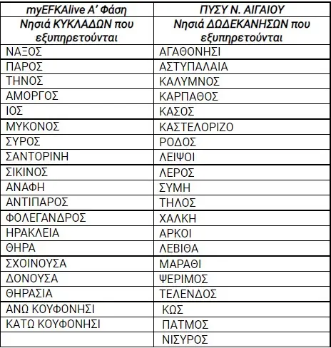 Τα νησιά στα οποία είναι διαθέσιμη πλέον η υπηρεσία είναι τα εξής: