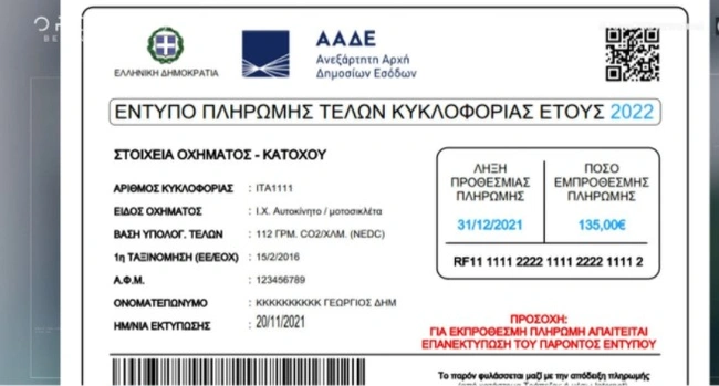 Σε αντίθεση με προηγούμενες χρονιές, τα φετινά ειδοποιητήρια για τα τέλη κυκλοφορίας θα περιλαμβάνουν QR Code, με σκοπό να διευκολυνθούν οι ιδιοκτήτες Ι.Χ. για την πληρωμή τους. Πρακτικά αυτό σημαίνει ότι σκανάροντας τον κωδικό QR, οι φορολογούμενοι θα μπορούν να πληρώσουν άμεσα τα τέλη κυκλοφορίας μέσω web banking και από το κινητό τους τηλέφωνο. Στην τηλεόραση του Οpen παρουσιάστηκε μάλιστα πώς θα είναι τα φετινά ειδοποιητήρια.