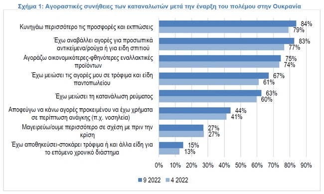 Το συμπέρασμα αυτό προκύπτει, μεταξύ άλλων, από έρευνα που πραγματοποίησε την εβδομάδα 29 Αυγούστου έως 2 Σεπτεμβρίου 2022 το Ινστιτούτο Έρευνας Λιανεμπορίου Καταναλωτικών Αγαθών (ΙΕΛΚΑ) με δείγμα 1.000 καταναλωτές.