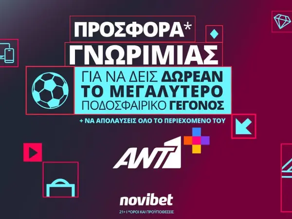 Η προσφορά* γνωριμίας ΑΝΤ1+ θα είναι διαθέσιμη στην πλατφόρμα της Novibet έως και την ολοκλήρωση της φάσης των ομίλων (02/12), ούτως ώστε όλοι να έχουν την δυνατότητα να παρακολουθήσουν όλα τα παιχνίδια!