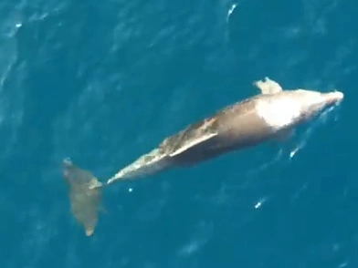 Κάμερα από «ψηλά» έπιασε το δελφίνι, 200 μέτρα από τη στεριά της παραλίας του Αγιόκαμπου, στη Λάρισα να κολυμπάει, να «χορεύει» παίζοντας στη θάλασσα και να απολαμβάνει τη θαλάσσια εμπειρία.