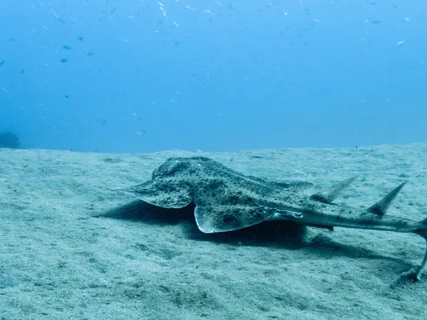 Σε αυτό βοηθάει και το χρώμα. Ο αγγελοκαρχαρίας, που μπορεί να φτάσει μήκος ως και 2,5 μέτρα, έχει διάφορες αποχρώσεις του λευκού, του γκρι, του καφέ και του μαύρου, χρώματα δηλαδή που συνδυάζονται με αυτά που θα βρει κανείς στον πυθμένα του ωκεανού.