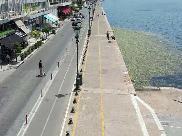 Μεγάλα πράσινα τμήματα «στρώθηκαν» στην επιφάνεια του Θερμαϊκού στη Θεσσαλονίκη, προκαλώντας το ενδιαφέρον κατοίκων και επισκεπτών.