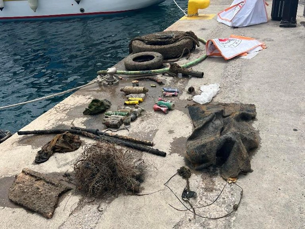 Στον βυθό βρέθηκαν σωλήνες αμιάντου, κολωνάκια από μπετόν, μπαταρίες και λάστιχα αυτοκινήτου, σχοινιά, μπουκάλια γυάλινα, πλαστικά κουτάκια, καθώς και άγκυρα από σκάφος.