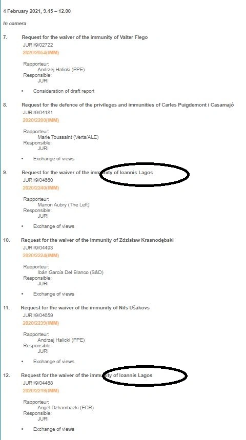 Για τις 4 Φεβρουαρίου είναι προγραμματισμένη στην Επιτροπή Νομικών Υποθέσεων (Juri) της Ευρωβουλής η συζήτηση σχετικά με την άρση της ασυλίας του καταδικασμένου για διεύθυνση εγκληματικής οργάνωσης, Γιάννη Λαγού.