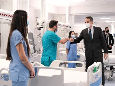 Τόνισε παράλληλα ότι εντός ενός έτους η χώρα θα βρεθεί στο μέσο ευρωπαϊκό όρο σε σχέση με τα κρεβάτια Εντατικής Θεραπείας ως ποσοστό του ελληνικού πληθυσμού. «Αυτόν τον στόχο θα τον πετύχουμε. Και είναι πολύ σημαντικό να τον πετύχουμε, όχι μόνο για να αντιμετωπίσουμε σήμερα αυτήν την πανδημία, που όπως σωστά είπε ο Ανδρέας (Δρακόπουλος) είναι ένας πόλεμος αυτός στον οποίο βρισκόμαστε, είναι πολύ σημαντικό και για την επόμενη μέρα», είπε χαρακτηριστικά.