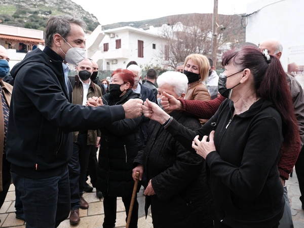 Σε συνομιλία του με τον Δήμαρχο, Δημήτρη Καρύδη, ο Πρωθυπουργός ανέφερε: «Θέλουμε να είστε ασφαλείς, θέλουμε να είστε υγιείς και βέβαια, με την ευκαιρία, σε κάθε επίσκεψή μας είναι εδώ και οι αρμόδιοι Υπουργοί, ο Υπουργός Ναυτιλίας και Νησιωτικής Πολιτικής, ο Αναπληρωτής Υπουργός Εσωτερικών, ο Γενικός Γραμματέας Υποδομών, για να κάνουμε και μια επισκόπηση των εκκρεμοτήτων που υπάρχουν, των θεμάτων που μπορούμε να λύσουμε. Και -όπως ξέρεις- είμαστε αποτελεσματική κυβέρνηση, μας αρέσει να λύνουμε προβλήματα και να ερχόμαστε στη συνέχεια να βλέπουμε αυτά που έχουμε κάνει, να μιλάμε λιγότερο και να πράττουμε περισσότερο. Οπότε είναι και μια ευκαιρία να μας μιλήσετε για τα προβλήματα του νησιού».