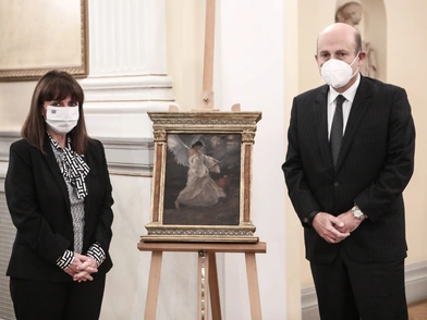 Ειδικότερα, η Πρόεδρος της Δημοκρατίας παραλαμβάνοντας τον πίνακα τόνισε ότι «με μεγάλη χαρά και συγκίνηση υποδεχόμαστε σήμερα στο Προεδρικό Μέγαρο τον πίνακα του Νικολάου Γύζη "Δόξα", δωρεά του ως σήμερα κατόχου του έργου, κ. Δημήτρη Γκέρτσου» και πρόσθεσε ότι ο Δημήτρης Γκέρτσος αποχωρίστηκε ένα πολύτιμο οικογενειακό κειμήλιο με τη σκέψη, όπως ο ίδιος χαρακτηριστικά αναφέρει, ότι ένας πίνακας με τόσο «μεγάλη εθνική διάσταση και αναγνώριση, δεν μπορούσε να του ανήκει».